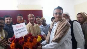 চাটখিলে এমপি এইচ,এম ইব্রাহিমকে ফুলের শুভেচ্ছা