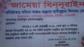 জামেয়া যিন্ নূরাইনের মাহফিল শুক্র ও শনিবার