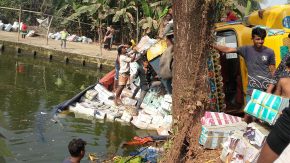 চাটখিলে ট্রাক ভর্তি বিনা মূল্যের বই পুকুরে